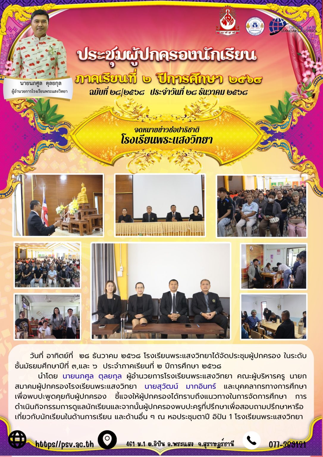 ประชุมผู้ปกครองนักเรียน ประจำภาคเรียนที่ 2 ปีการศึกษา 2568