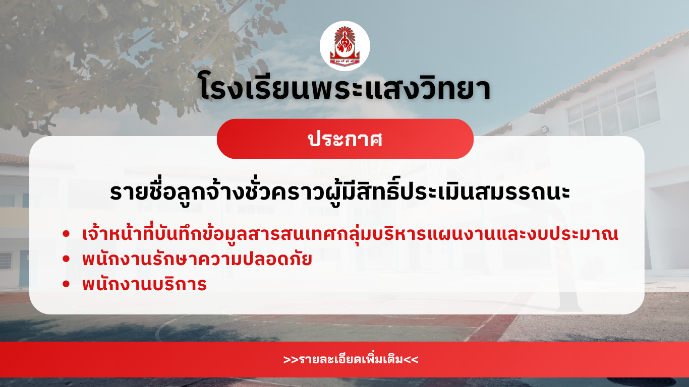 Next Post: ประกาศรายชื่อผู้ผ่านการคัดเลือกเพื่อเป็นลูกจ้างชั่วคราว 2569