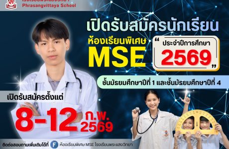 เปิดรับสมัครนักเรียนเข้าเรียนต่อในระดับชั้นมัธยมศึกษาปีที่ 1 และ 4 ห้องเรียนพิเศษ MSE