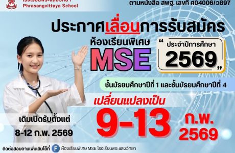 เปิดรับสมัครนักเรียนเข้าเรียนต่อในระดับชั้นมัธยมศึกษาปีที่ 1 และ 4 ห้องเรียนพิเศษ MSE