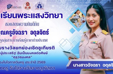 ขอแสดงความยินดีกับ คุณครูอัจฉรา อดุลจิตร์ 2026-01-06 By: psvadmin On: 6 มกราคม 2026 In: ข่าวประชาสัมพันธ์, ประชาสัมพันธ์ Continue Reading
